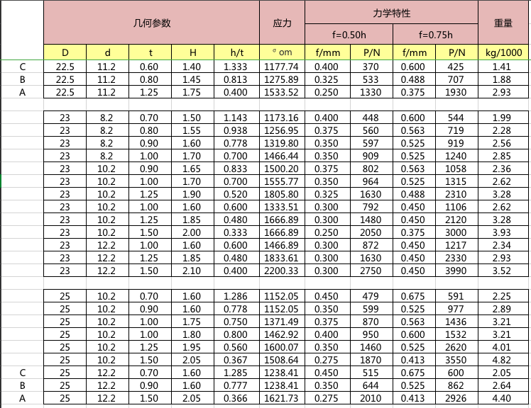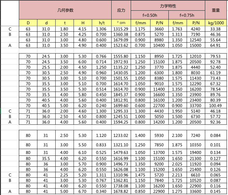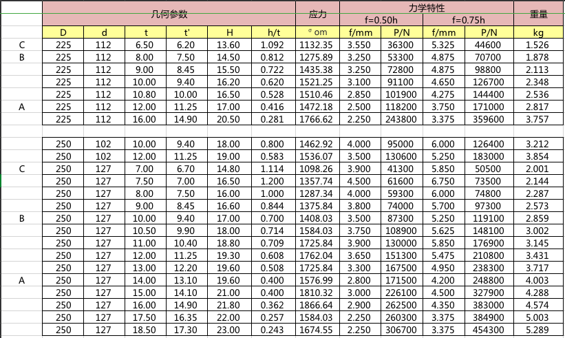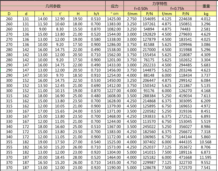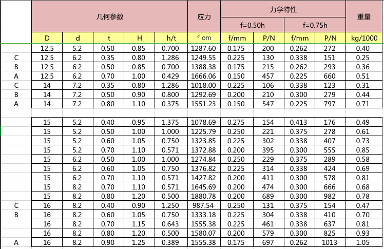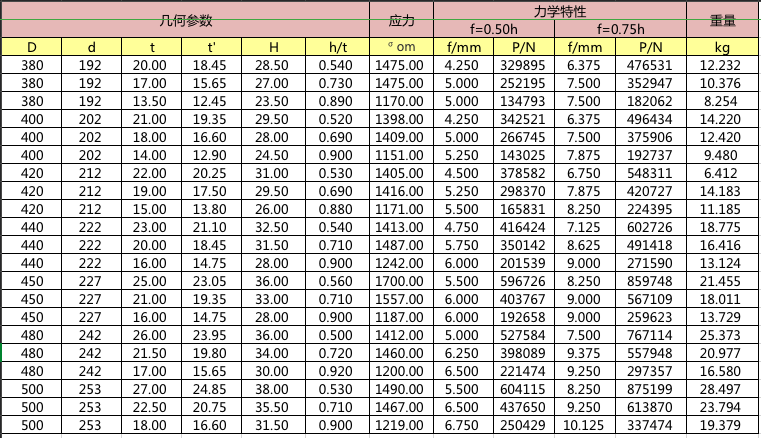 碟簧參數(shù)表